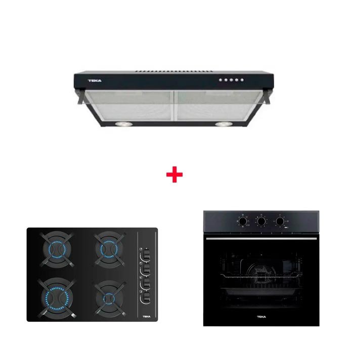 Campana X 62120 KOS BK + Cocina cristal gas GBC 64003 + Horno eléctrico HSB 610 BK