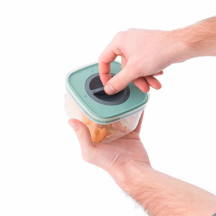 Las delgadas tapas dejan más espacio para la comida, que se mantienen frescas gracias al giro del cierre de la tapa, hermético al aire y al agua. Los distintos tamaños le permiten guardar y apilar los recipientes para ahorrar espacio de forma óptima.