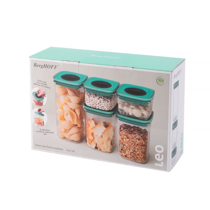 - Set de 5 recipientes herméticos al aire y al agua de primera calidad con tapas de silicona.