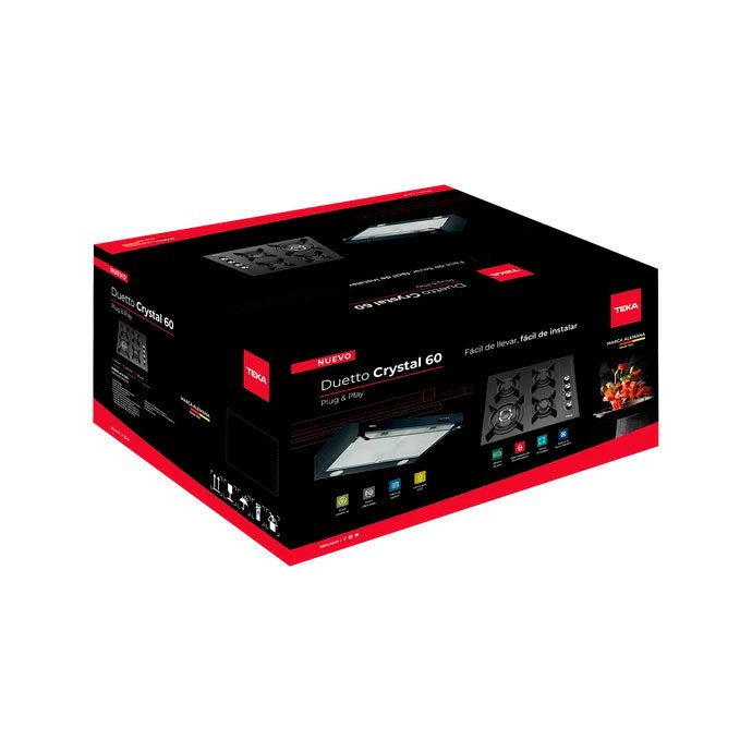 Duetto Crystal 60 Encimera a Gas 4 hornillas + Campana Extractora Black