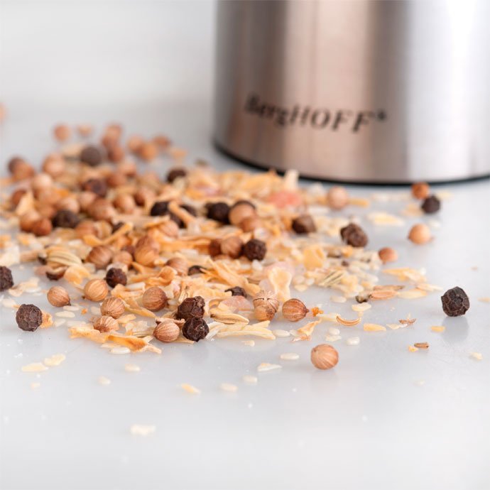 - Cuerpo robusto y resistente a la corrosión con dos condimentos en un solo molinillo. Diseño ergonómico para un agarre firme y seguro.