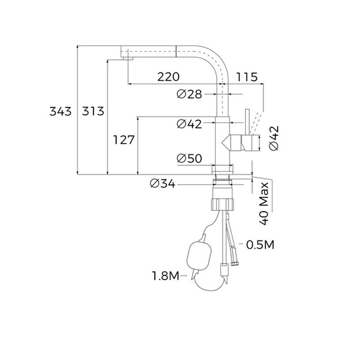 - Maneral extraíble 1 función, chorro normal
