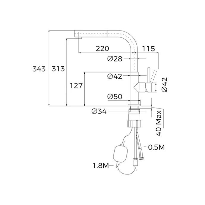 Monomando de Cocina con caño alto extraíble UNI 9331